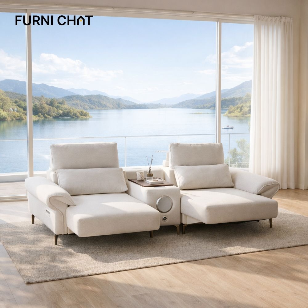 알렉스 전동 슬라이딩 확장형 4인용소파 아쿠아스웨이드 (멀티기능 USB포트 스피커 무선충전) E0등급자재