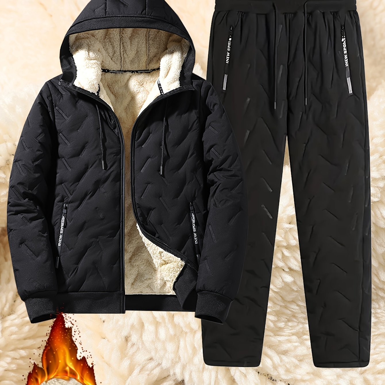 TEMU 남성 가을 겨울 사운드웨이브 기술 세트 캐주얼 후드 안감 방한 투피스 세트