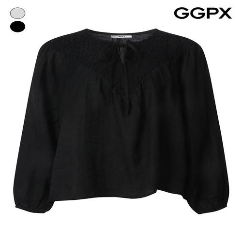 [GGPX]엠보 리본 스프링 린넨 블라우스 (GQ2SH006B)