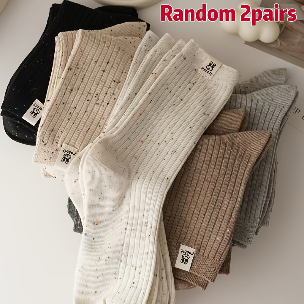 TEMU 여성용 가을/겨울 브라운 양말 4켤레/2켤레, 한국 스타일, 슬럽 얀, 천 라벨, 프레피 스타일, 패셔너블 미드 튜브 여성 양말