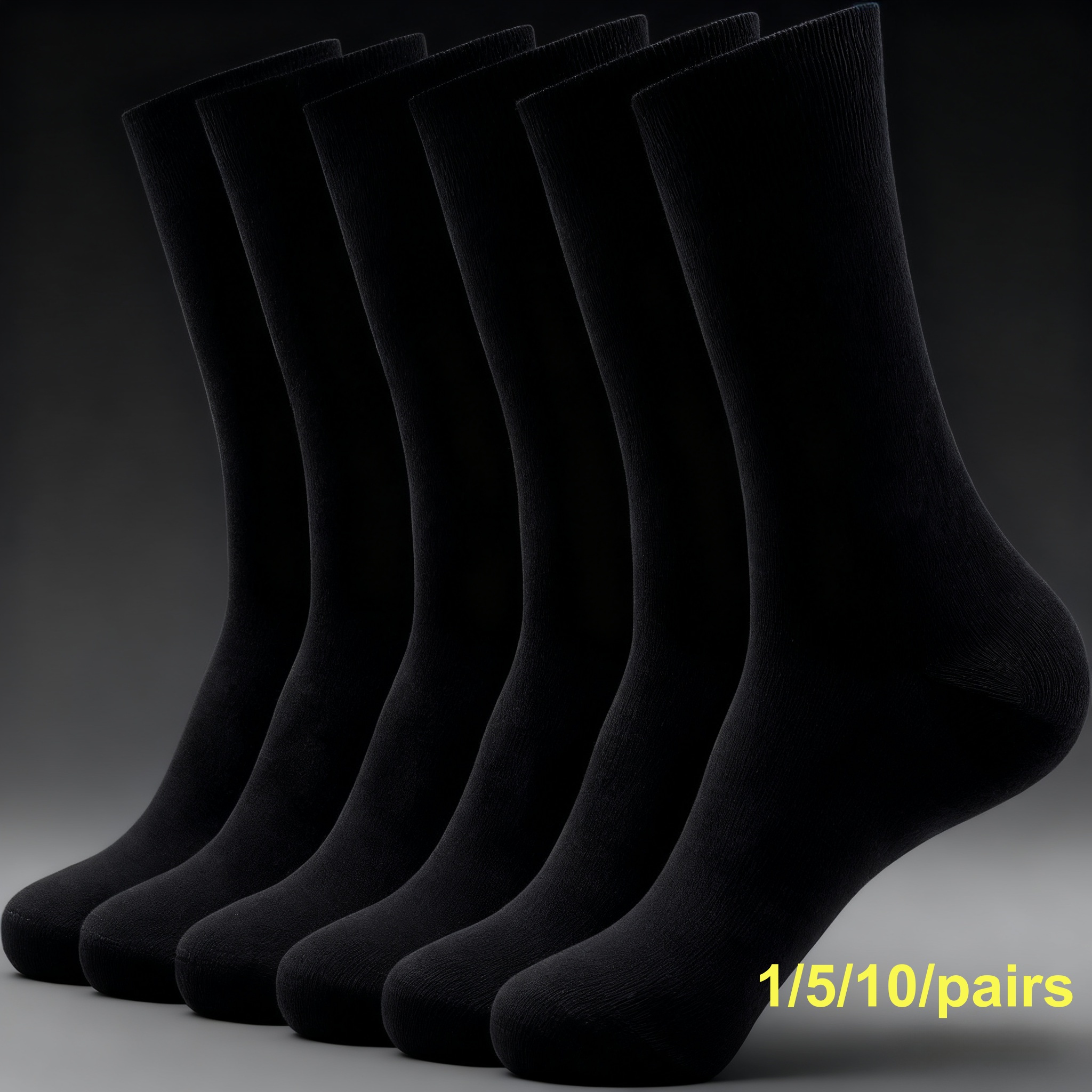 TEMU 1/5/10켤레 남성용 블랙 클래식 비즈니스 미드 캐프 양말 - 통기성과 편안함, 사무실, 캐주얼, 경량 스포츠에 적합, 단색 다용도 착용, 필수 작업용 양말, 우아한 디자인, 매끄러운 질감, 여성용 블랙 클래식 비즈니스 미드 캐프 양말 - 사계절 사용 가능, 오피스웨어,캐주얼 웨어, 디자인,부드러운 소재,편안한 착용감,전문가용 복장