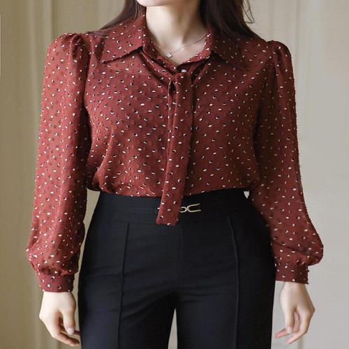 [스타일온미][루이스엔젤] 리프리 투톤 도트 쟈가드 쉬폰 리본 타이 SET 블라우스