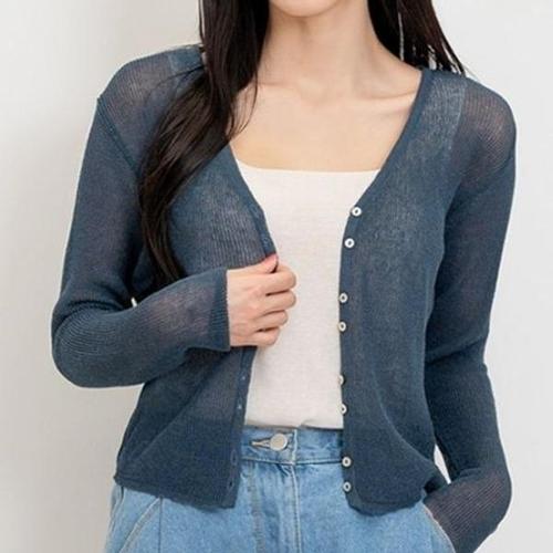 [엄지척]가디건 니트 여름 얇은 린넨 겉옷 에어컨 브이넥_19798869_667501