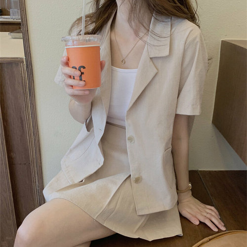 [끌레아]여름 린넨 반팔 반바지 투피스 세트 허리 포인트 데일리룩 오피스룩
