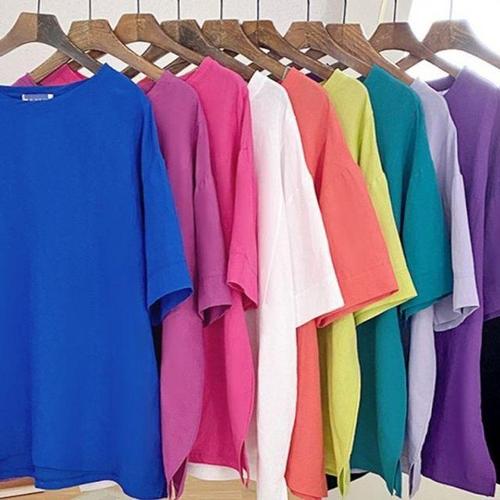 [엄지척]여성 린넨 여름 라운드 반팔니트 여행 티셔츠_20388653_667501