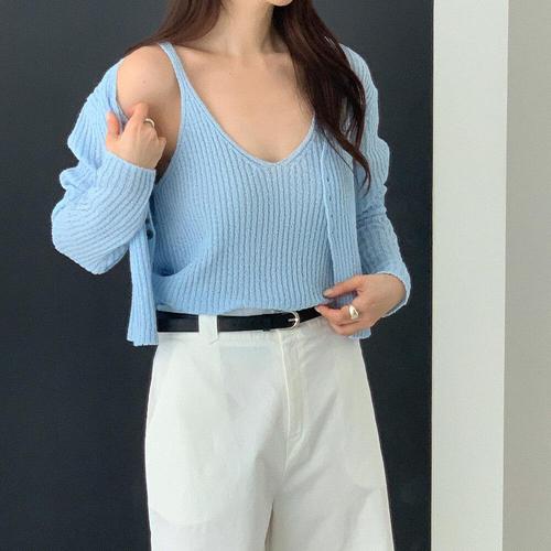 [옷자락]여자 양브이 이너티 린넨니트 슬림핏 골지 여름 나시