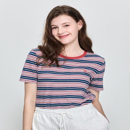 헤지스 여성 멀티 스트라이프 린넨혼방 반소매티셔츠 딥블루 (HSTS5B312B3)