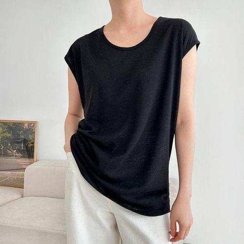 여성 혼방 끈나시 베이직 비치 레이어드 루즈핏 민소매 상의 티셔츠 나시티 빅사이즈 여름 은창린넨 이너 4