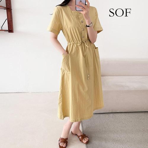 [SOF][SOF]스퀘어넥 스트링 버튼 린넨 원피스 SOA2WO012