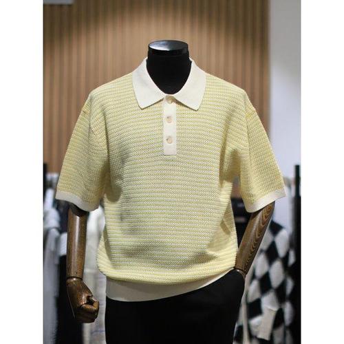 갤러리아_BON S/S 옐로 리넨 스트라이프 티에리 오버핏 반팔 니트 BN4MSW861