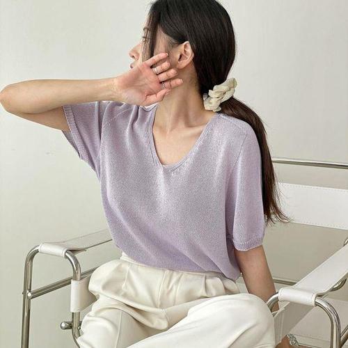 [모노무드]모노무드 베이직 여성 패션 린넨 여름 브이넥 반팔 니트