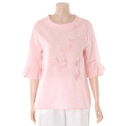 여름 여자 셔링 진주 반팔 린넨 빅사이즈 루즈핏 블라우스 40-50대 중년여성
