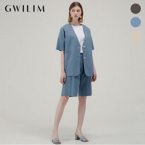 [귈림]()루즈핏 브이넥 솔리드 린넨 하프 셋업세트 (GAMJK01GPT02G_DBL)