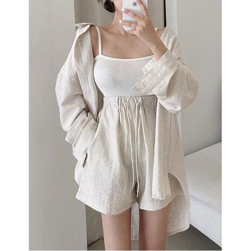 [보니스팍스(여성의류)]린넨 투 버튼 숏 팬츠 베스트 셋업 (XP4OP024M0)