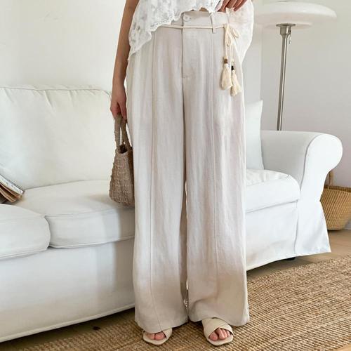 [옷자락] 여자 린넨혼방 핀턱 와이드핏 태슬벨트 슬랙스