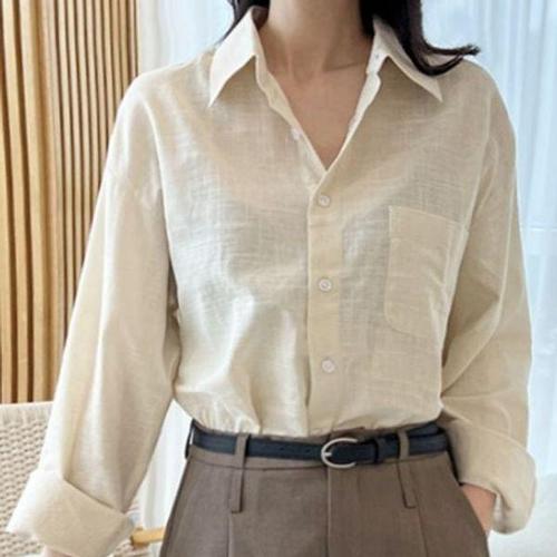[에이치플러스몰]여성 린넨 라이크 긴팔 남방 셔츠 블라우스 DJJ1019