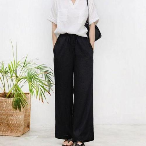 [에이치플러스몰]팬츠 스판바지 시원한 와이드 면바지 린넨 밴딩바지
