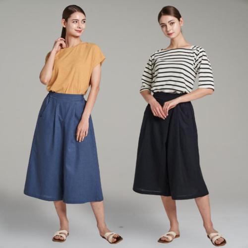 여성 편한 여름 린넨와이드 뒷밴딩 9부 팬츠 ouG4+4GCl