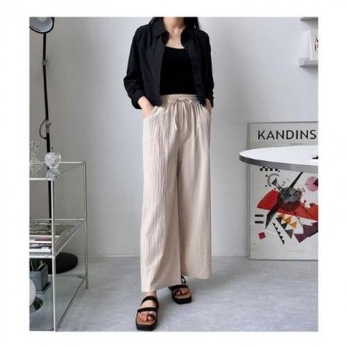 [굿쇼핑몰_의류]여성 가벼운 린넨 밴딩 통바지 팬츠