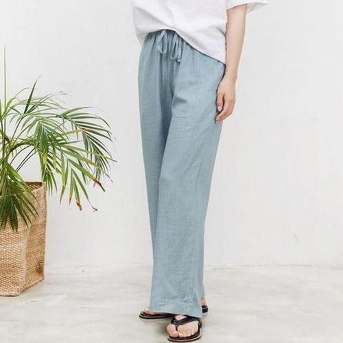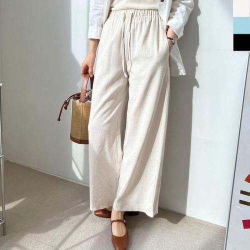 [에이치플러스몰]린넨 여자 일자바지 와이드 팬츠 여성 밴딩 여름 바지