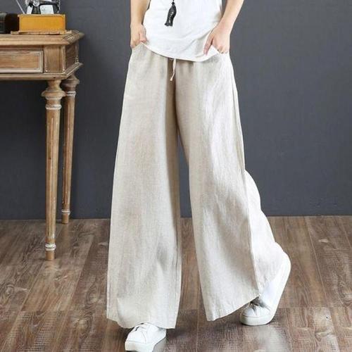 여성 시원 편안 면 마 소재 오버핏 바지 프리미엄 소프트 캐주얼 린넨 와이드 팬츠
