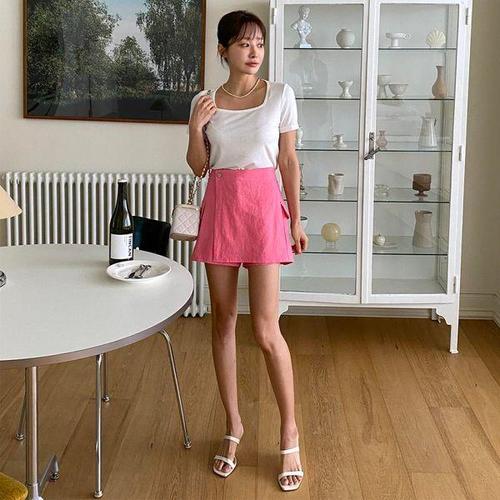 [다잇템]여자 뒷밴딩 린넨 언발 랩 치마바지