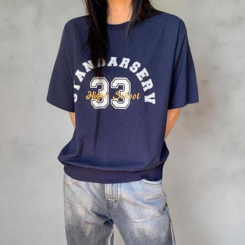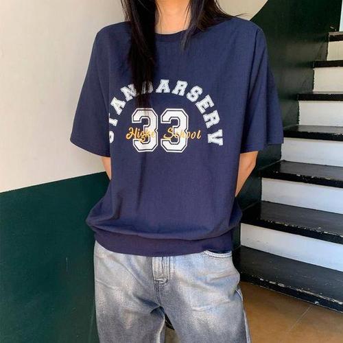 [신상오픈런]여성용 레터링 라운드넥 반팔 티셔츠 면과 레이온 린넨 혼합