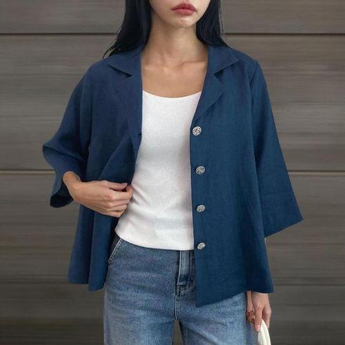 [신상오픈런]여성 오버핏 7부 린넨 자켓 클래식 문양 단추