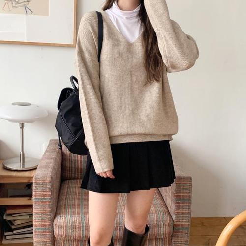 [린다샵]자르마 캐주얼 브이넥 심플 니트 롱 원피스