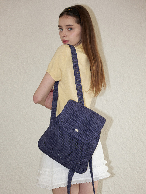 [슬로우슬로울리] 릴리 핸드메이드 크로셰 라피아 백팩 (+gift 하트키링 증정) _ 네이비