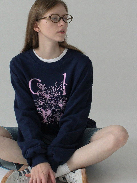 [논로컬] 글래스하우스 릴리 프린트 스웻셔츠 - 네이비