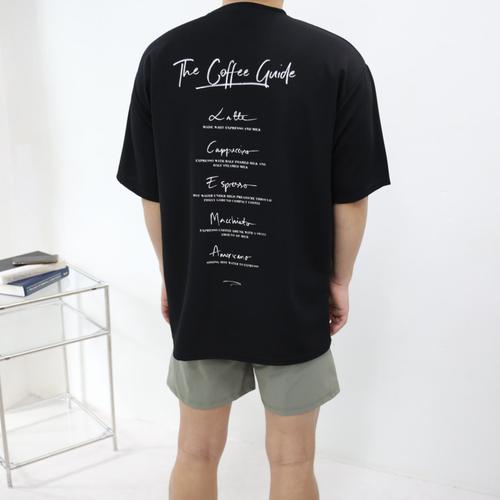 [엠클로]남자 오버핏 링클프리 커피가이드 프린팅 여름 기능성 쿨 반팔 티셔츠