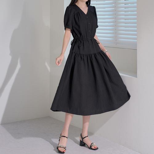 [로즈미] [55~77] 셀르 링클 반팔 원피스