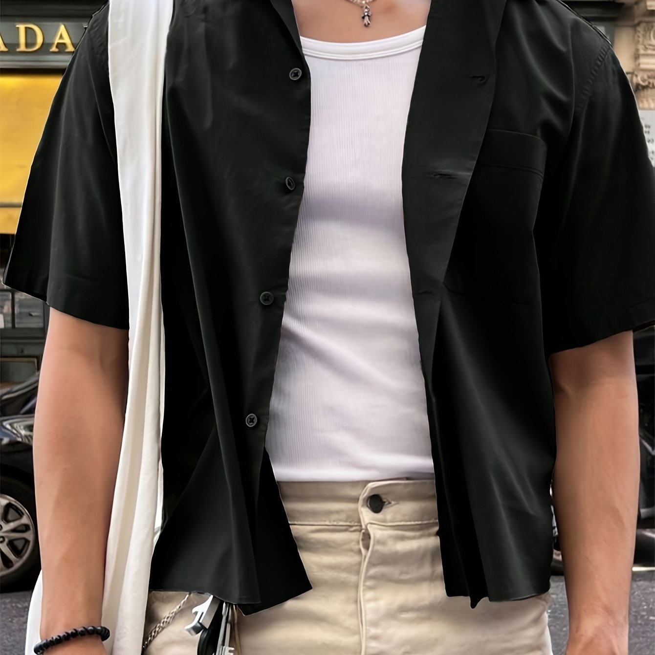 TEMU 솔리드 컬러 남성 정장 반팔 셔츠, 우아한 라펠 버튼셔츠, 여름 남성 비즈니스 캐주얼 셔츠