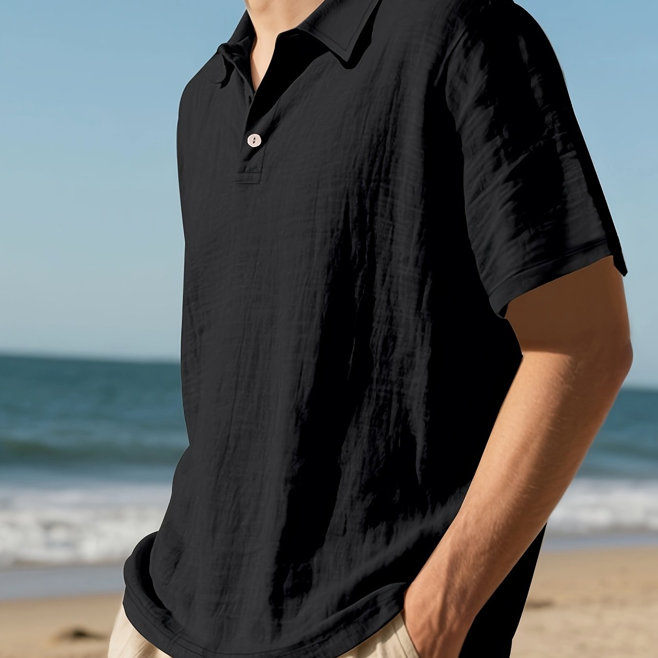 TEMU 남성용 여름 반팔 셔츠 - 통기성 린넨 캐주얼 버튼업 셔츠, 클래식 칼라 디자인, 비치웨어 & 아웃도어 착용, 솔리드 컬러, 컨트라스트 칼라, 편안한 소재, 스타일리시한 남성복