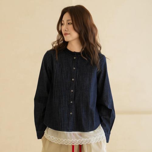 엄마옷 마담4060 [내추럴포엠]데님핀턱레이스블라우스 -QBL2603017-