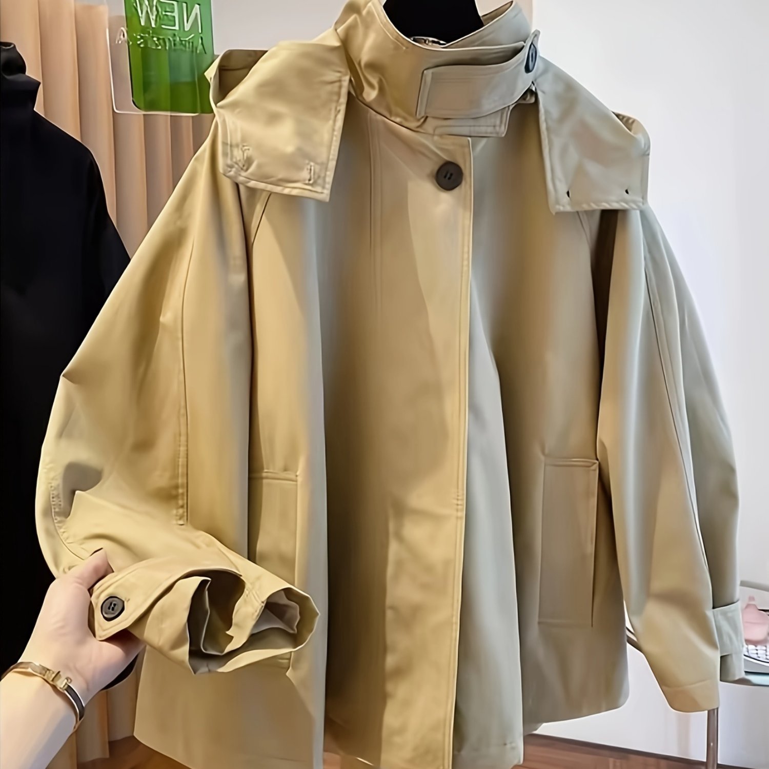 TEMU 여성용 한국 스타일 하이엔드 센스 트렌치 코트 봄/가을 신상 스몰 사이즈 후드 캐주얼 일본/영국 스타일 인기