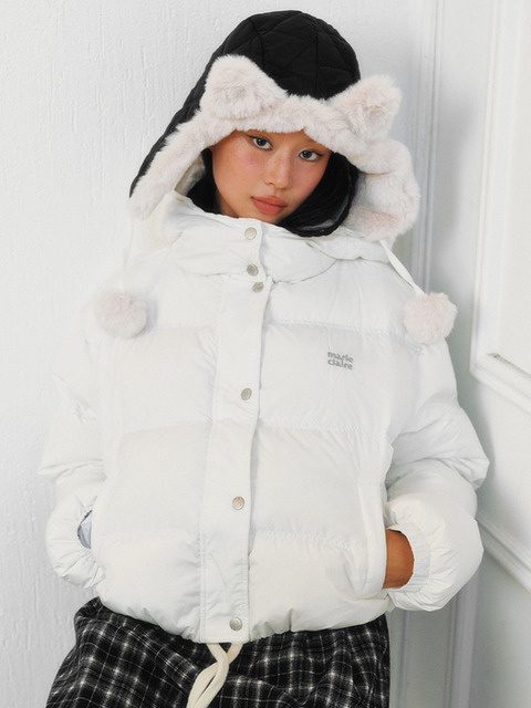 마리끌레르 로고 후드 숏 덕다운 패딩(MAFDDW01NWH)