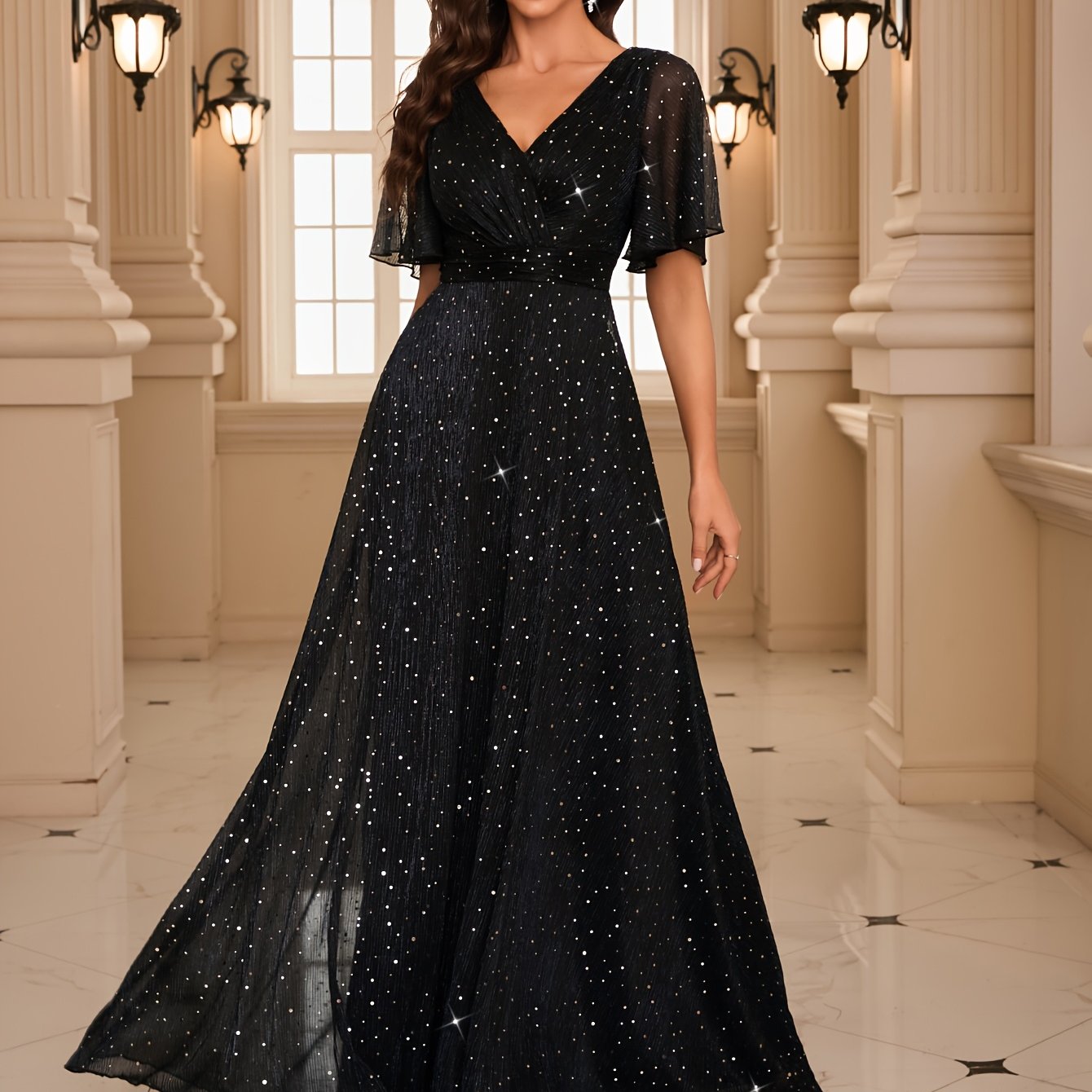 TEMU 플러스 사이즈, JNQualy V넥 긴팔 드레스 - 솔리드 컬러 겨울 가을 우아한 스웨터 드레스, 포근한 니트웨어, 세미 포멀 & 정장, 손세탁/건조 권장