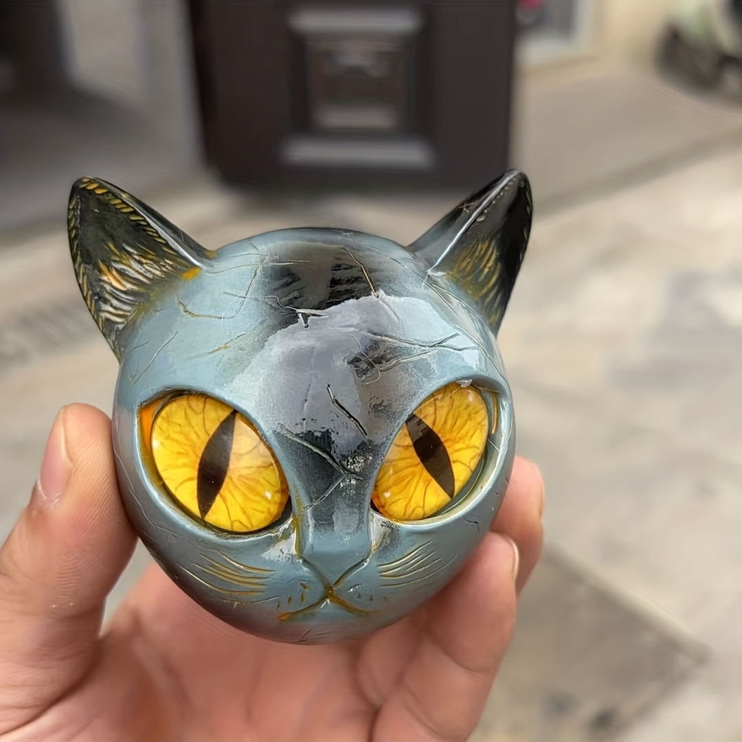 TEMU 1개 수제 조각 검은 고양이 돌 조각상 - 수제 대리석 질감 레진 피규어, 표현력 넘치는 눈과 고양이 특징, 미니어처 고딕/빈티지 스타일 홈 데코, 책장, 책상용 - 대리석 무늬 고양이 선물, 고양이 애호가를 위한