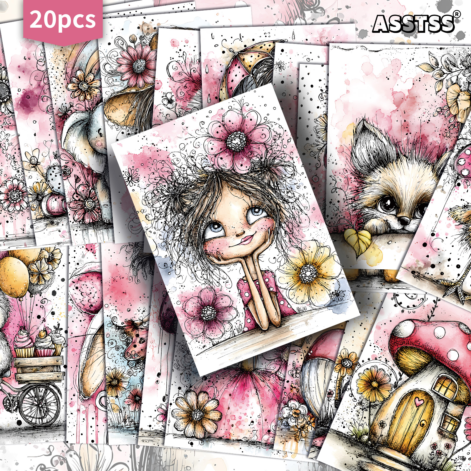 TEMU 20팩 ASSTSS 레트로 핑크 소녀와 동물, 꽃 선물 카드 - 4x6인치 레트로 잡지 종이, 단면 또는 양면, 클래식 핀업 일러스트, 스크랩북 & 공예용 수집 가능한 장식 그림 카드
