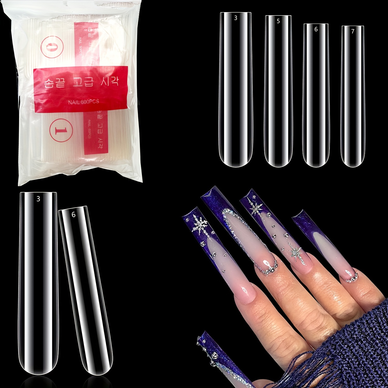 TEMU 600개의 소프트 젤 X 네일 팁, 클리어 아크릴 네일 팁, 추가 긴 깊숙한 정사각형 모양의 네일 팁, 네일 연장 매니큐어 도구, 네일 아트 DIY용|네일팁