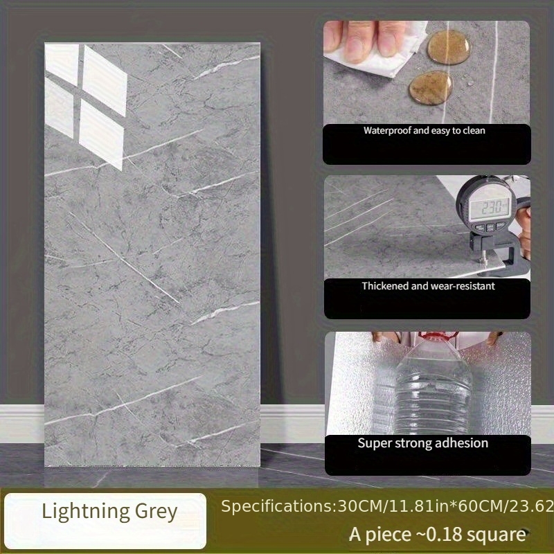 TEMU 10개입 모조 세라믹 타일/마블 바닥 스티커, 두꺼운 방수, 자가 접착식 창의적인 PVC 스티커, 바닥 개조용, 거실 및 욕실 카펫에 적합, 쉽게 떼어내고 붙일 수 있음