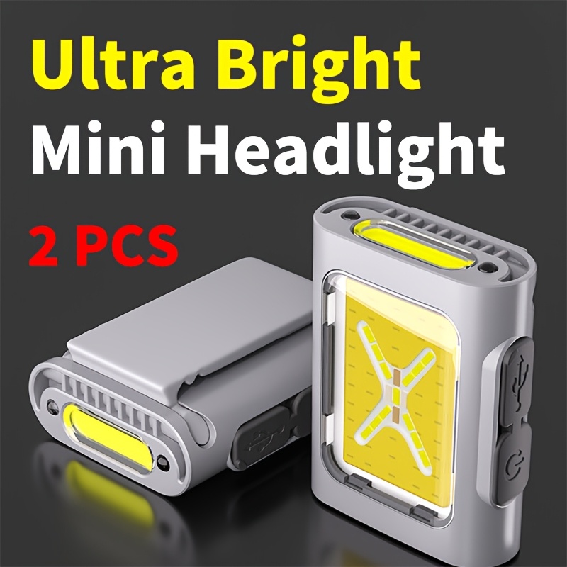 TEMU 초고휘도 휴대용 미니 LED 작업등 2개, 제스처 감지 기능이 있는 다기능 충전식 소형 헤드램프, 7가지 조명 모드, Type-C 고속 충전 지원, 야외 하이킹, 캠핑, 사냥, 낚시, 러닝에 적합