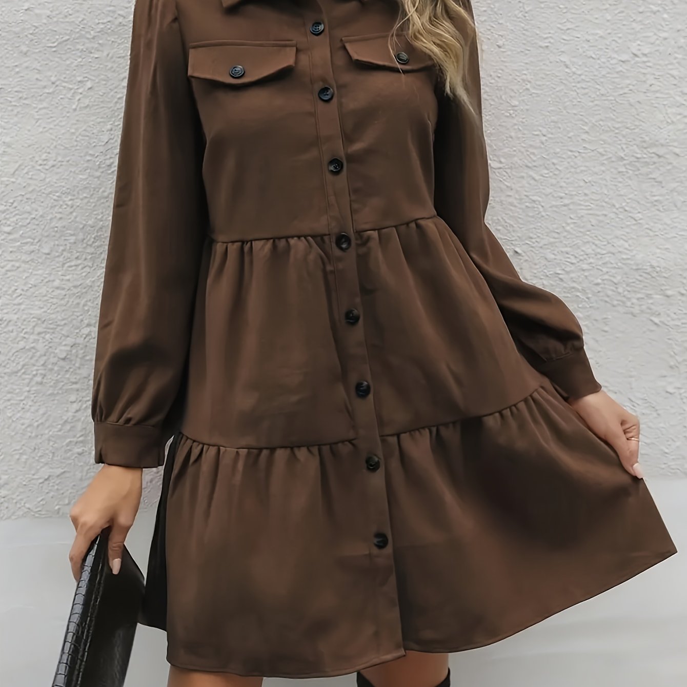 TEMU 여성용 우아한 솔리드 컬러 웨딩 & 특별한 날 드레스 - 숏 칼라 A라인 스모크 드레스, 소매 & 버튼 프론트, 봄/가을 블라우스 드레스, 데이, 교회 행사, 캐주얼 아웃핏 - 세탁기 사용 가능 (S 사이즈)|가을원피스