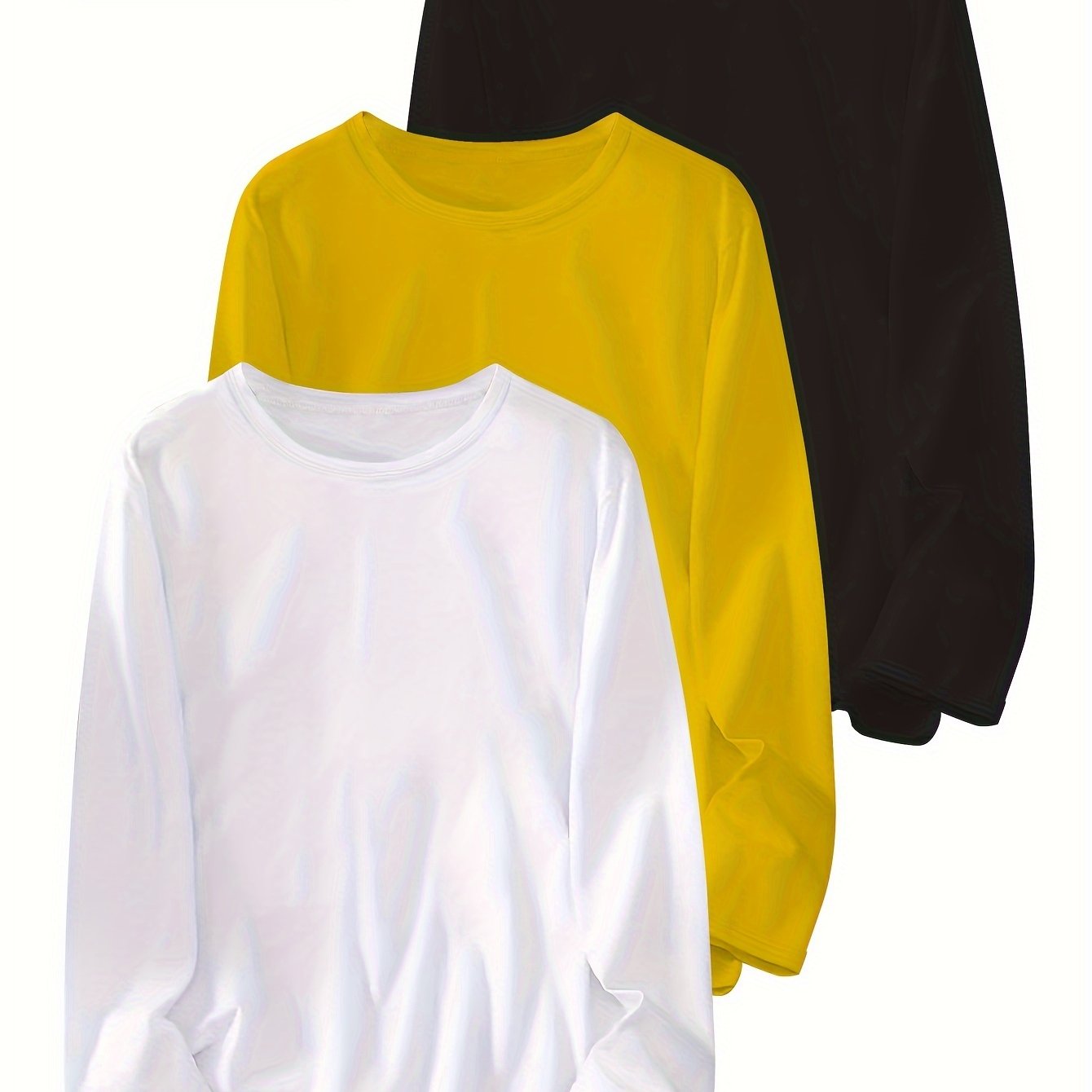 TEMU 3팩 여성용 긴팔 티셔츠, 100% 폴리에스테르 니트 소재, 스커트 핏 크루 넥, 단색 풀로버, 정규 슬리브, 약간의 스트레치, 가을 캐주얼 탑 - 180gsm