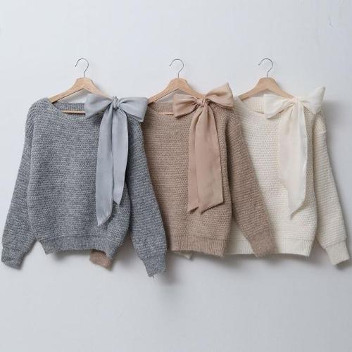 [다잇템]여자 FW 리본 덤블 마후라 들러리룩 니트