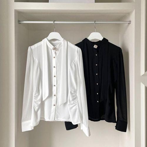 [다잇템][다잇템] 여자 콩단추 들러리룩 마후라 큐빅 롱타이 롱슬리브 블라우스_23592409_588872