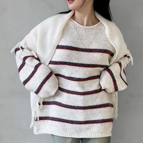 [다잇템][다잇템] 여성 타이넥 줄무늬 마후라 페미닌 롱슬리브 니트_23200239_588872