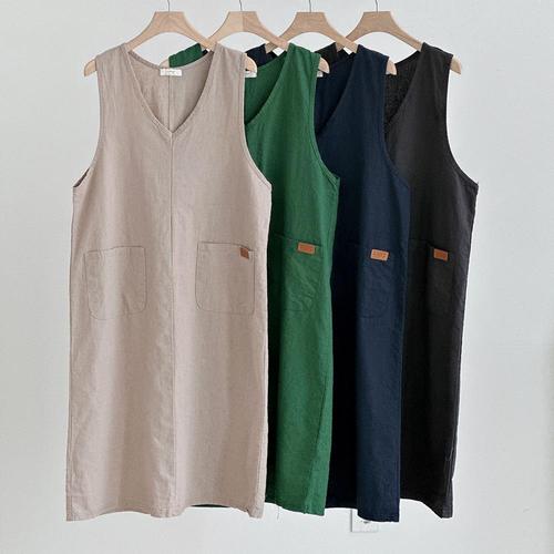 이쁘다요 린넨 브이 미디 여름 마 루즈핏 원피스 민소매 나시 WFLMPKF